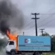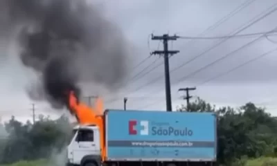 O Incêndio destruiu o veículo e mobilizou o Corpo de Bombeiros; não houve feridos Na manhã deste sábado, 26 de julho, um caminhão pertencente à Drogaria...