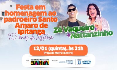 Os cantores Zé Vaqueiro e Nattanzinho abrem, nesta quinta-feira (12), a partir das 21h, na Praça da Matriz de Lauro de Freitas, a programação musical da...
