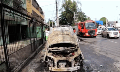 Uma ambulância do Hospital Geral Roberto Santos (HGRS) pegou fogo na rua Conselheiro Pedro Luiz, no bairro Rio Vermelho, em Salvador, no início da tarde desta...