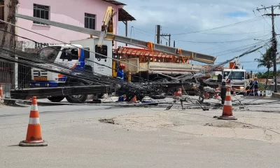 Um poste caiu sobre um caminhão na manhã desta segunda-feira (15), na Rua Boca da Mata, no bairro de Valéria, em Salvador. Apesar do susto, ninguém ficou...