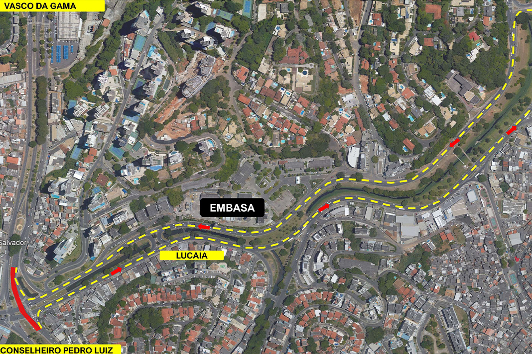 Como alternativa, os condutores que estiverem na Rua Conselheiro Pedro Luís com destino à Vasco da Gama devem acessar a Rua Lucaia, passar pela Avenida Juracy Magalhães Jr., de onde podem fazer o retorno em frente ao Mercado do Rio Vermelho. O fluxo no sentido oposto (Vasco para a Conselheiro Pedro Luís) não será afetado neste momento.