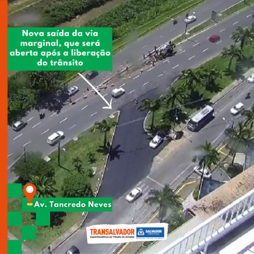 Com as obras de requalificação da Avenida Tancredo Neves chegando à fase final, o trânsito na via sofrerá algumas alterações entre o próximo sábado (2) e 11 de abril. A primeira mudança no tráfego de veículos na região inicia às 8h do sábado (2), com o fechamento de uma saída da via marginal em frente ao banco Itaú, no sentido orla.