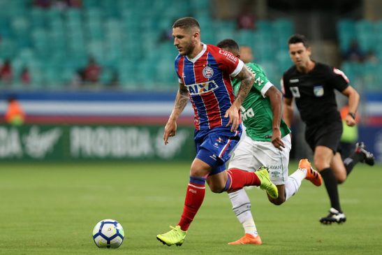 O Bahia era só pressão, mas no final da etapa tomou dois sustos seguidos. Aos 43, Leandro Pereira entrou cara a cara com Douglas, que saiu bem do gol e forçou o chute para fora do centroavante, que aos 44, em jogada individual pela esquerda, chutou forte da entrada da área e acertou a trave do goleiro do Tricolor.