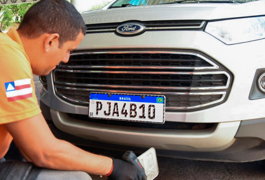 O Departamento Estadual de Trânsito da Bahia (Detran-BA) iniciou, nesta quinta-feira (27), o emplacamento de veículos no padrão Mercosul. O primeiro carro a receber a nova identificação foi um Ford Ecosport Freestyle, registrado em Salvador. A placa tem fundo branco com uma faixa azul, quatro letras e três números, bandeira do Brasil, emblema do Mercosul, marca d’água e um código de barras bidimensional (QR-Code), que garante a rastreabilidade e evita fraudes.